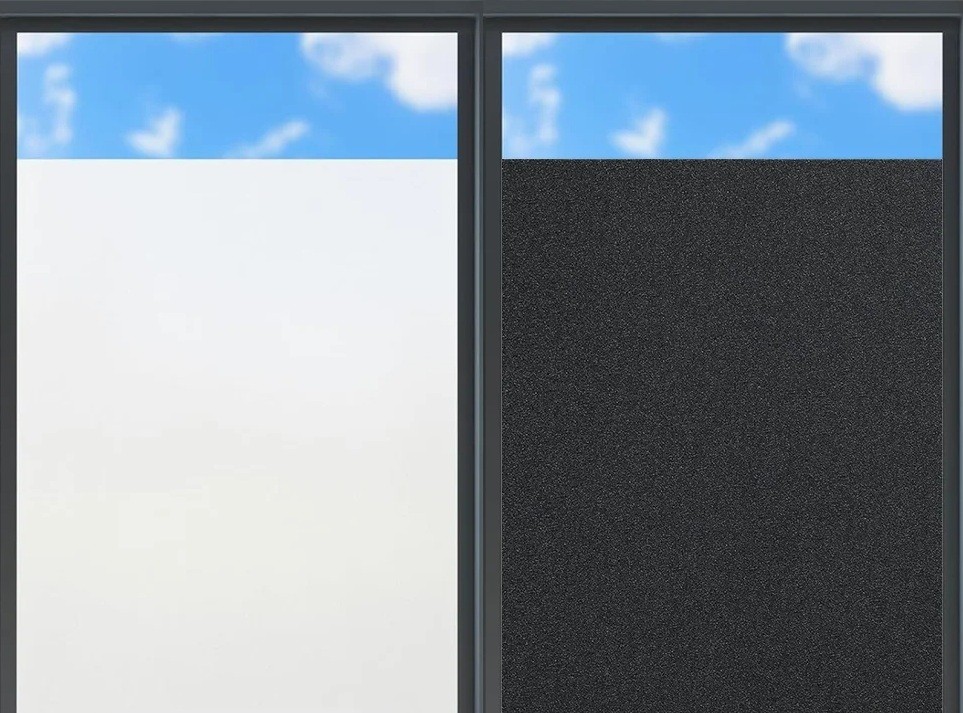 Fólia estática para janelas protege a privacidade e o sol, é fácil de aplicar sem cola e é reutilizável em vidro liso. Descrição completa