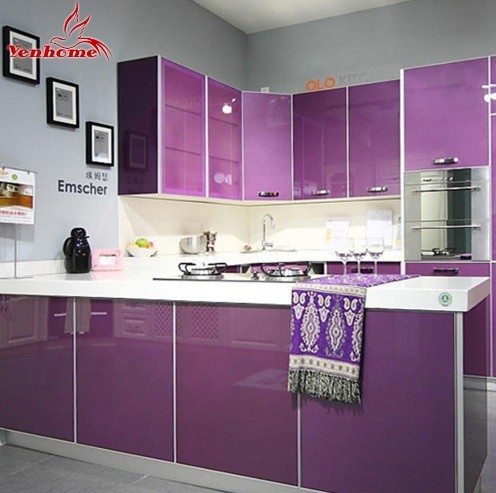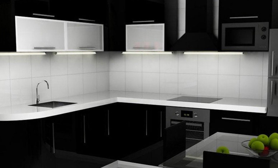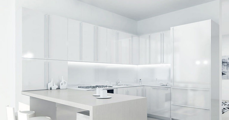 Inspire-se com a folia vinílica autocolante brilhante para renovar a sua bancada de cozinha existente.