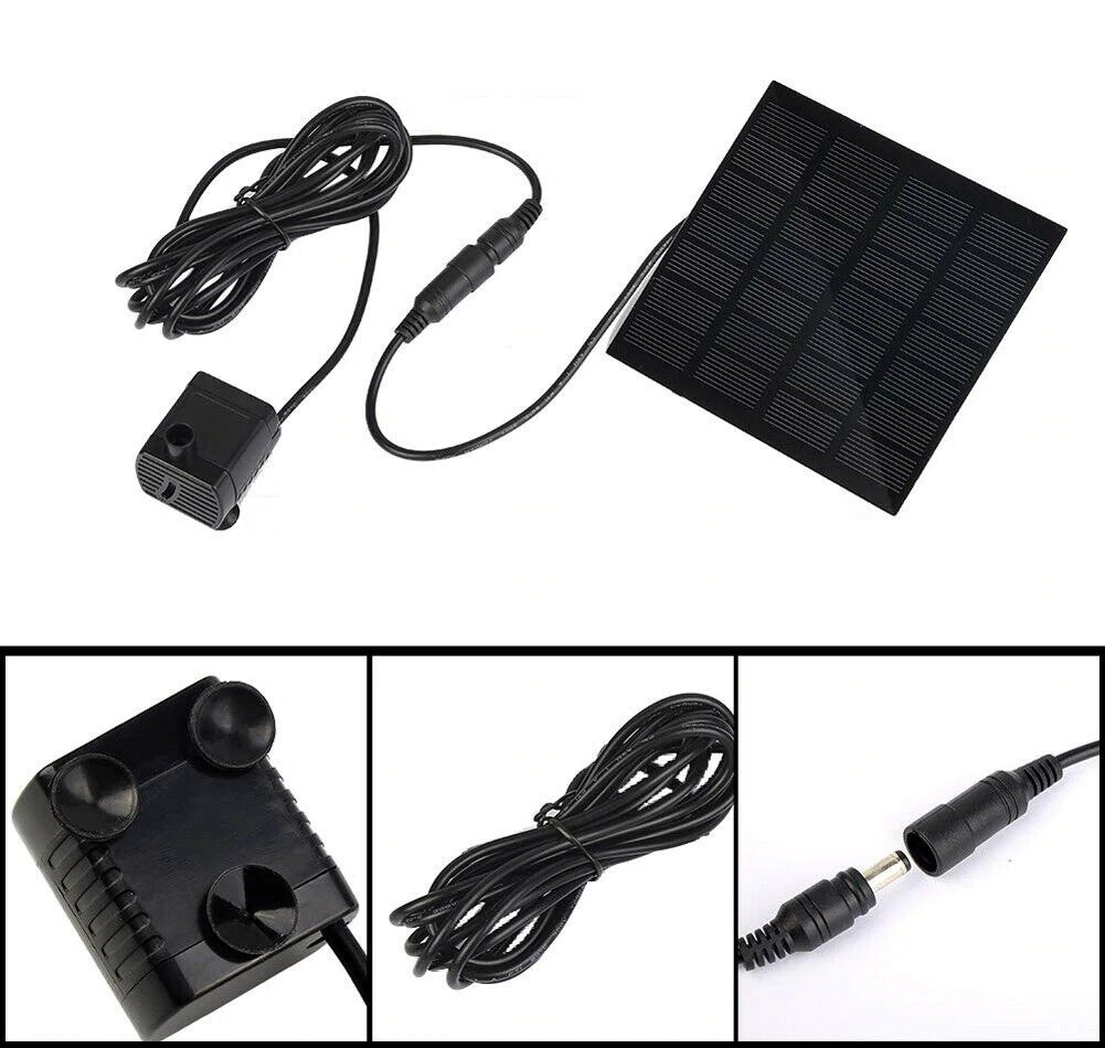 Conteúdo da embalagem: 1x painel solar, 1x bomba de água, 2x filtro, 3x adaptador para fonte, 1x manual