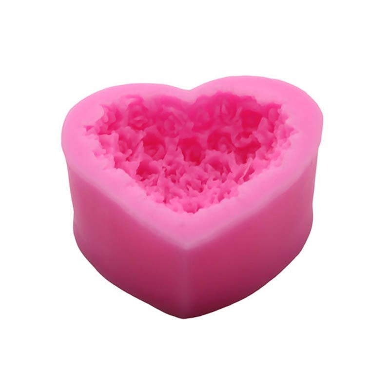 Forma de silicone em forma de coração com rosas