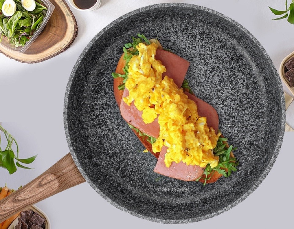 Frigideira com tampa e revestimento em mármore