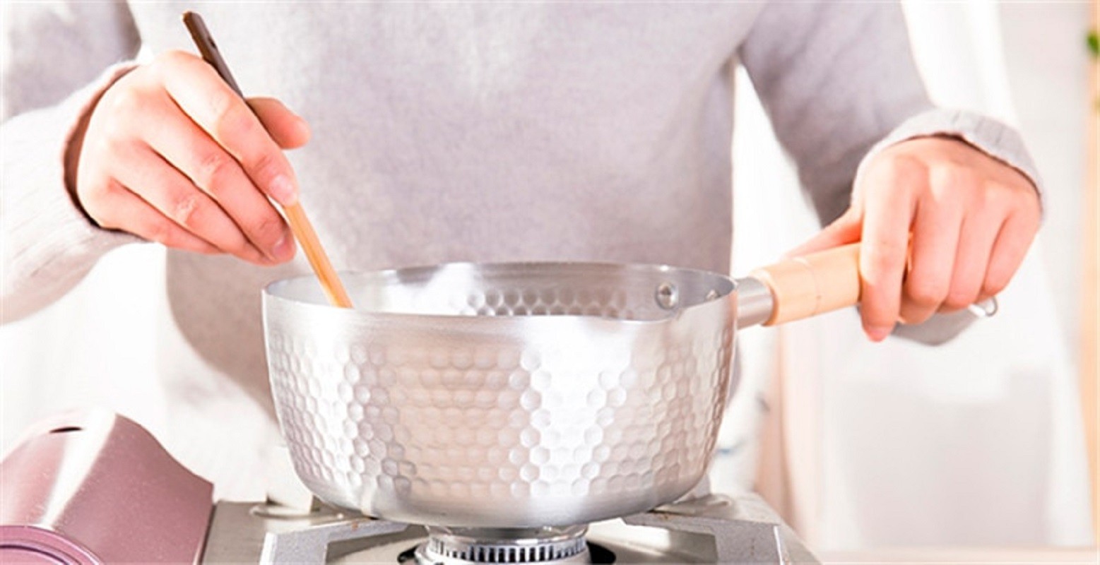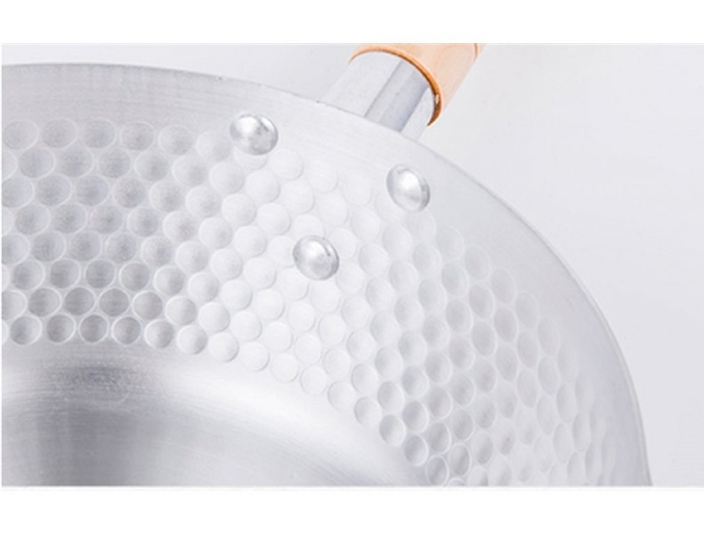 Frigideira de alumínio com pega de madeira