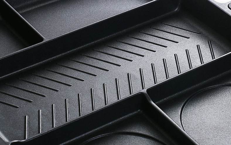 Com esta frigideira, tem o almoço cozinhado de forma fácil e rápida. A frigideira está dividida em 5 áreas de cozedura.