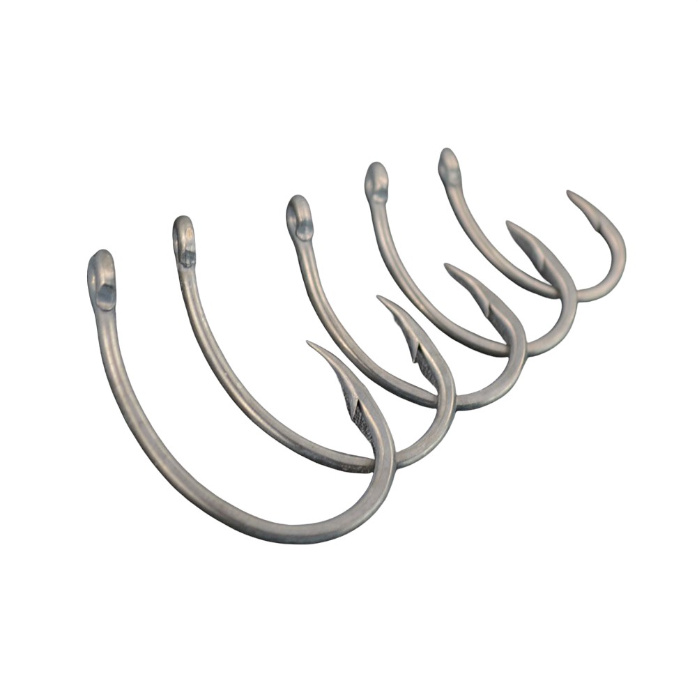Gancho para pesca no tamanho 4 em embalagem de 50 un. Adequado para a pesca de carpas. Terminado com um olhal. Alta resistência e resistência à corrosão. Ponta afiada com ponta.