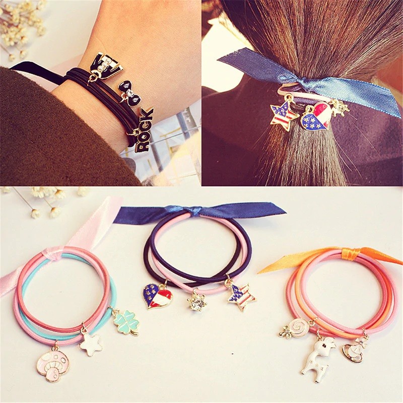 Bonitos e originais ganchos para cabelo com diversos pendentes.