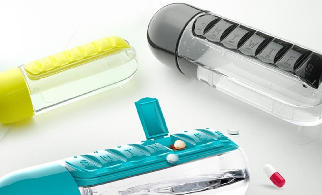 Garrafa de água e dispensador de medicamentos 2 em 1