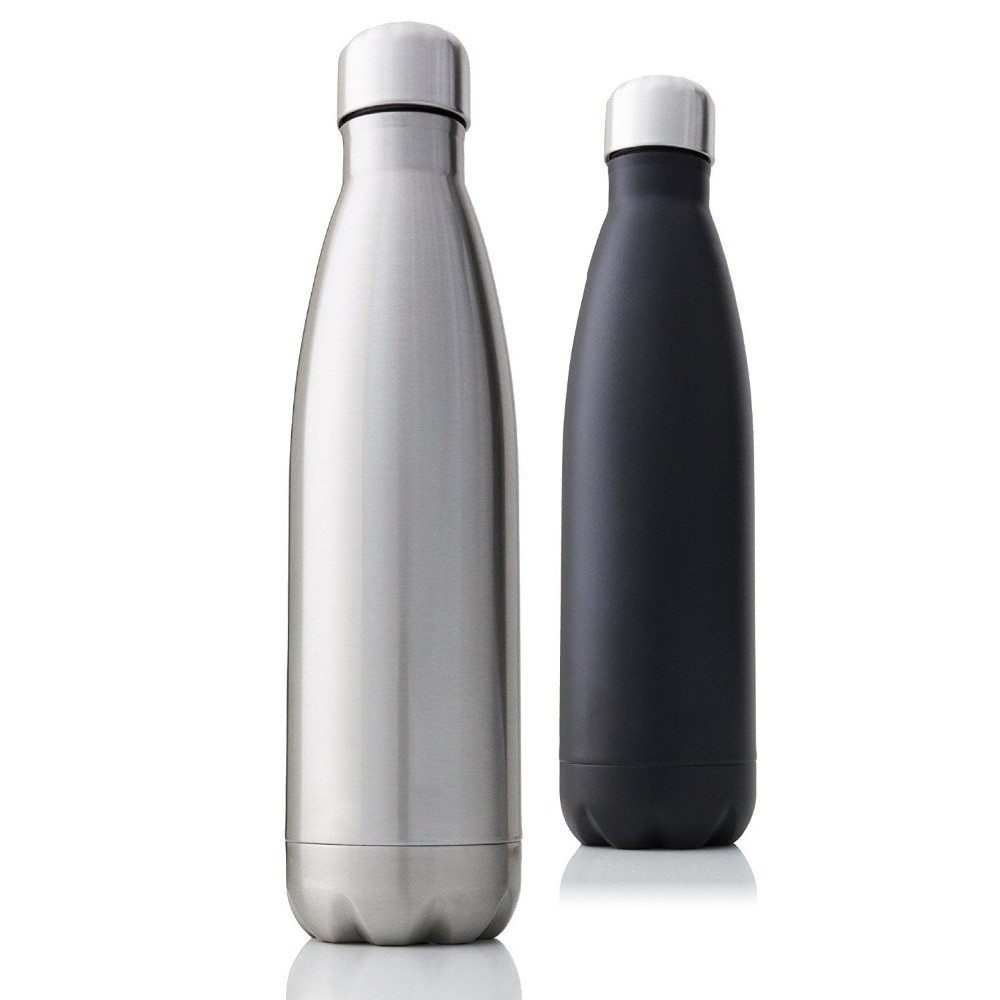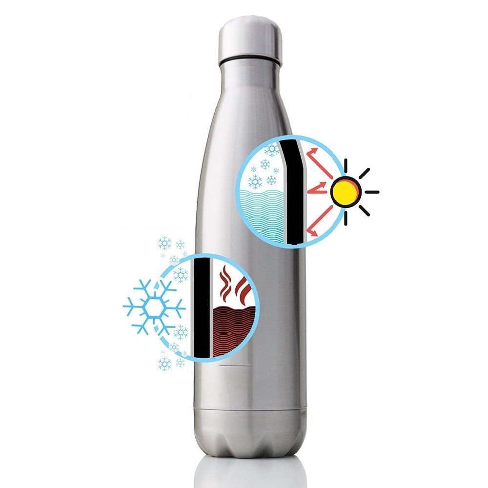 A garrafa tem isolamento duplo para bebidas quentes e frias.