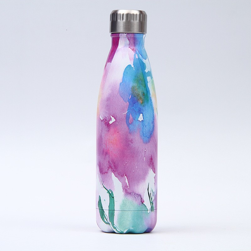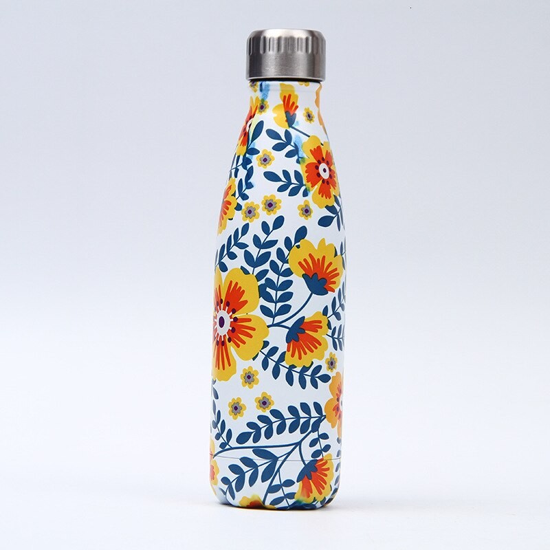 Garrafa de viagem em aço inoxidável com padrão de flores