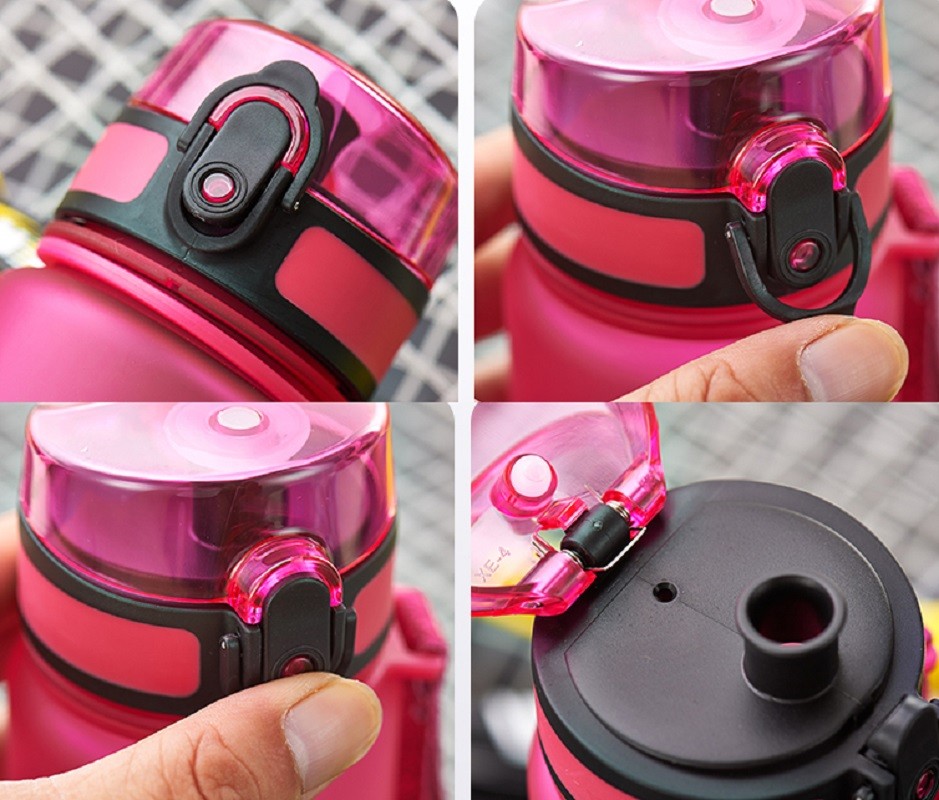 O fecho da garrafa tem um prático mecanismo de bloqueio.