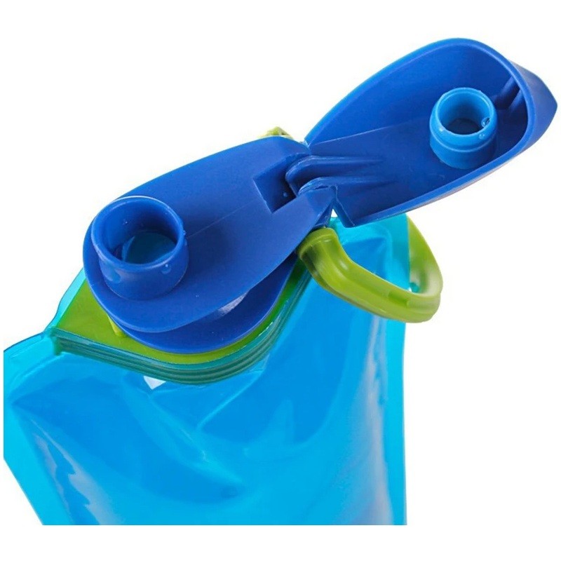 Garrafa de plástico dobrável leve com mosquetão. Adequada para viajar, praticar desporto e fazer caminhadas. Reutilizável, flexível e fácil de transportar. Descrição completa