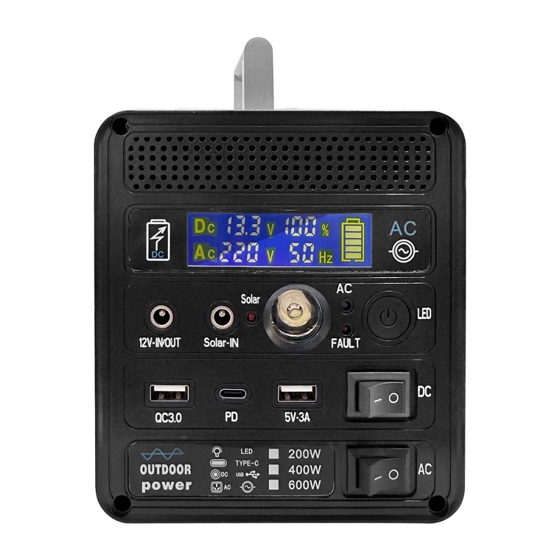 Gerador solar portátil Central elétrica solar com luz LED Central elétrica portátil 48000 mAh 200W bateria LiFePO4 Estação de carregamento 19,7 x 12,5 x 13,8 cm
