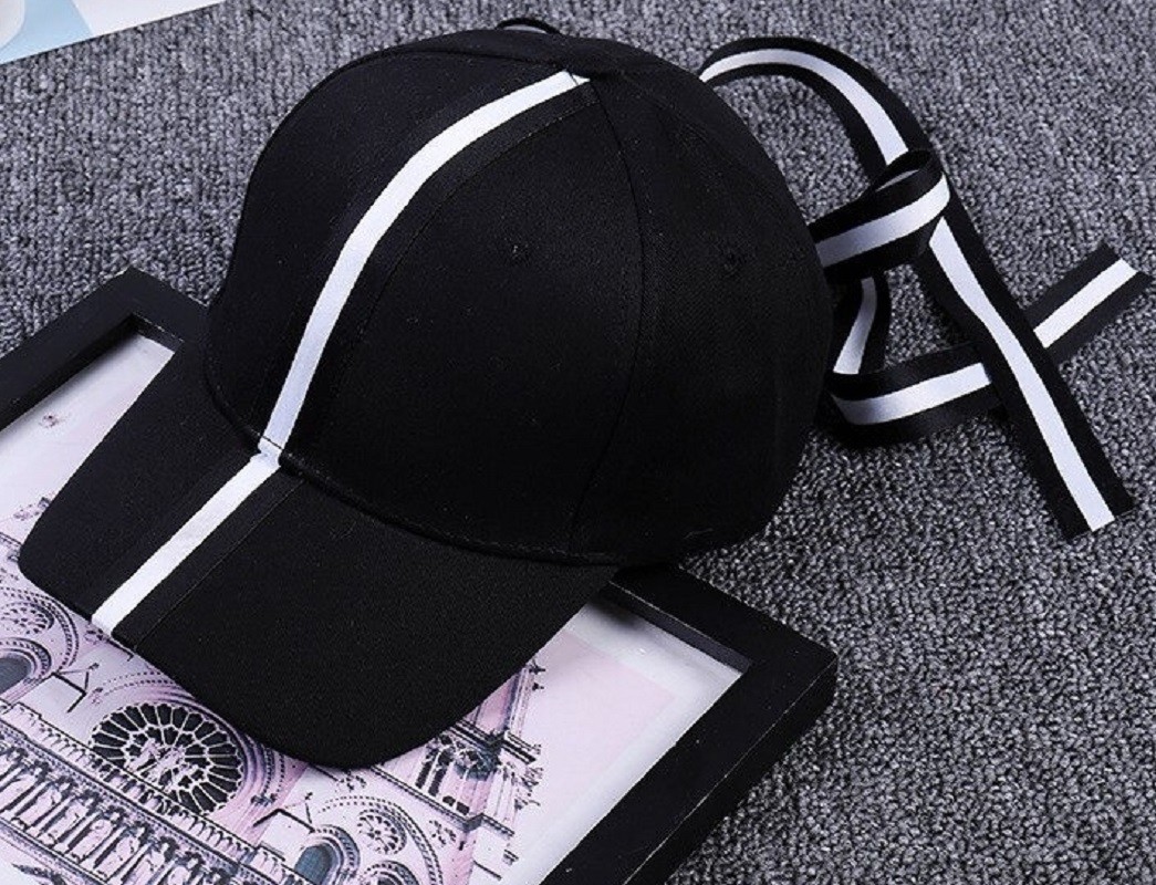 Gorra feminina com fita preto e branco