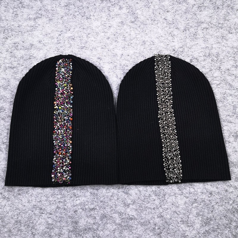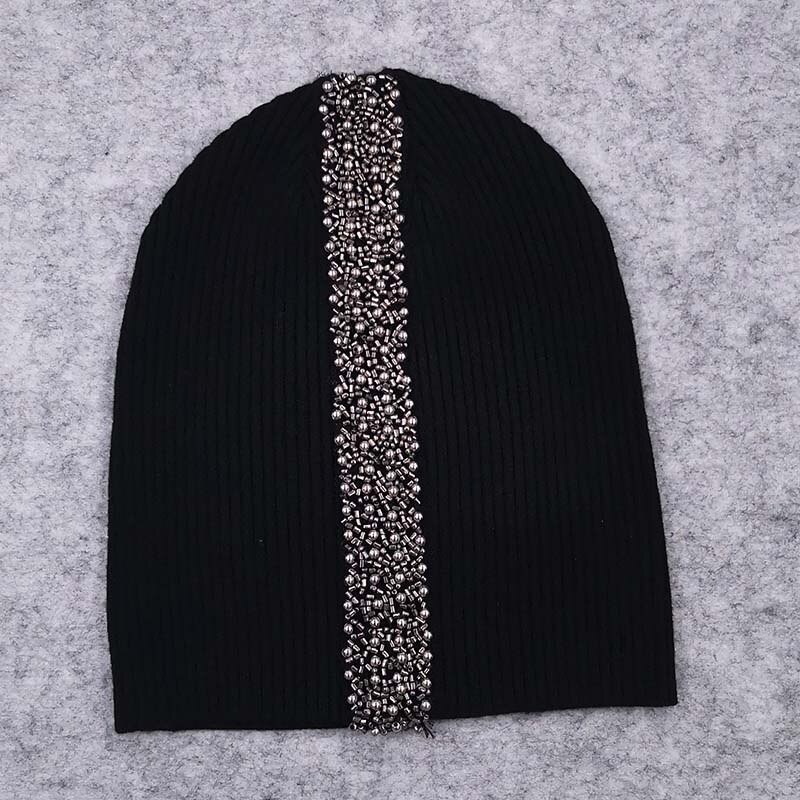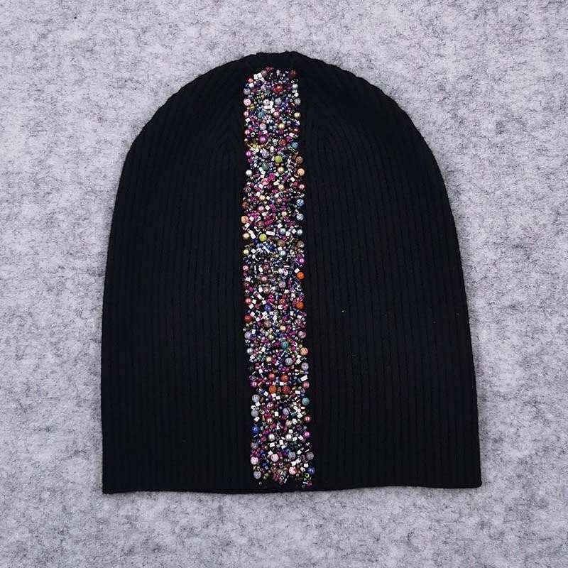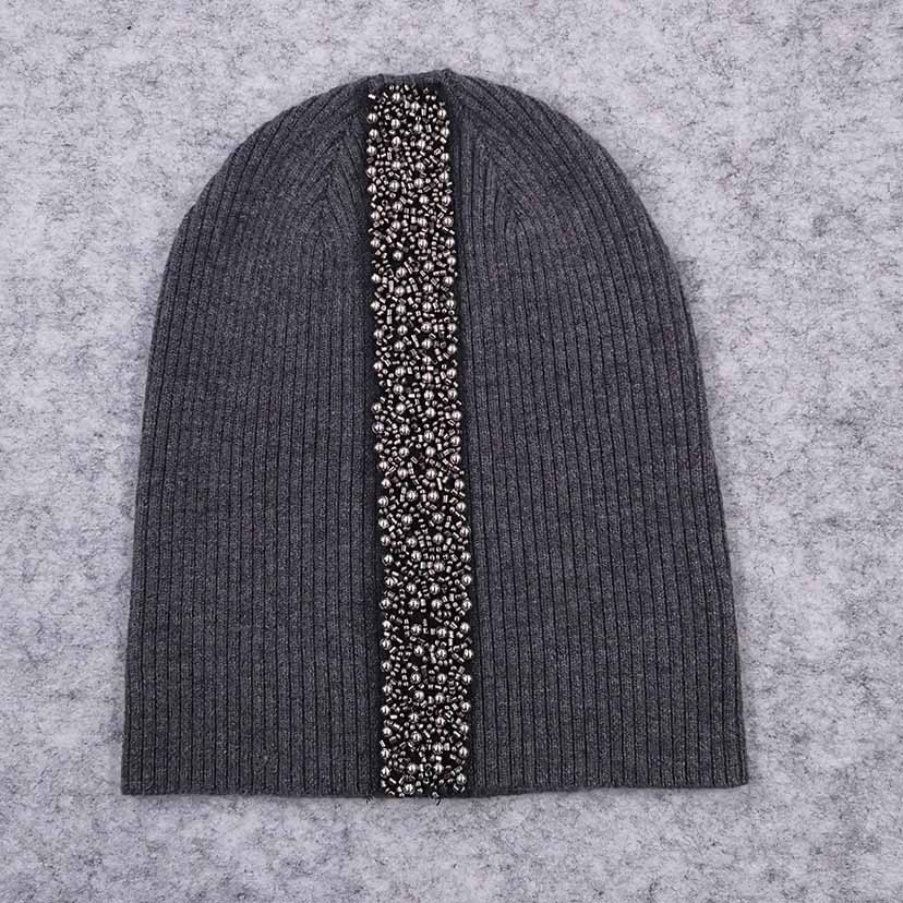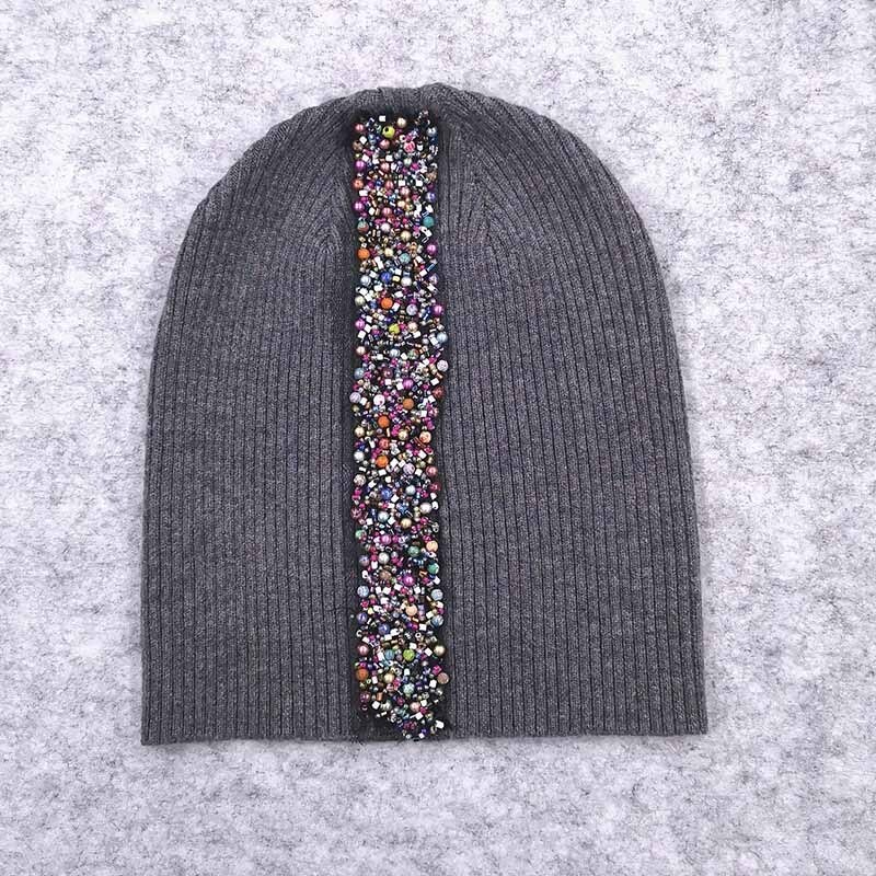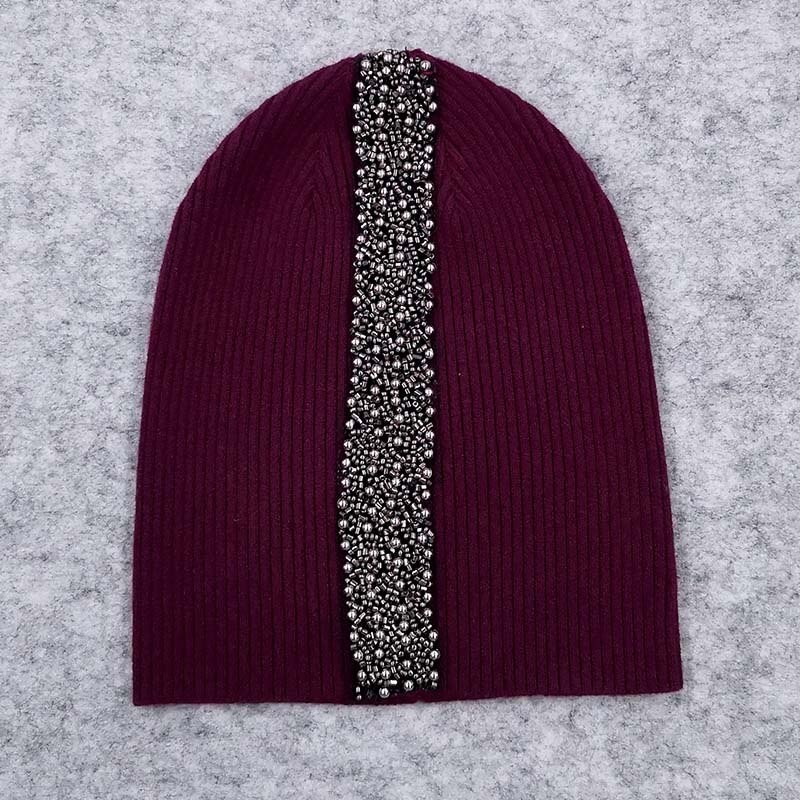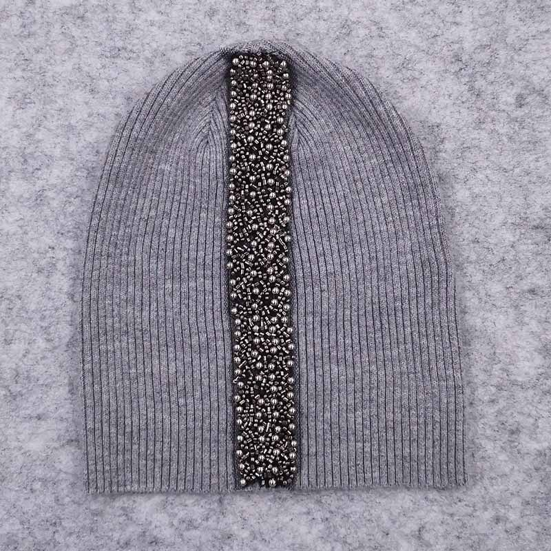 Moderno gorro feminino no estilo beanie bordado com contas.