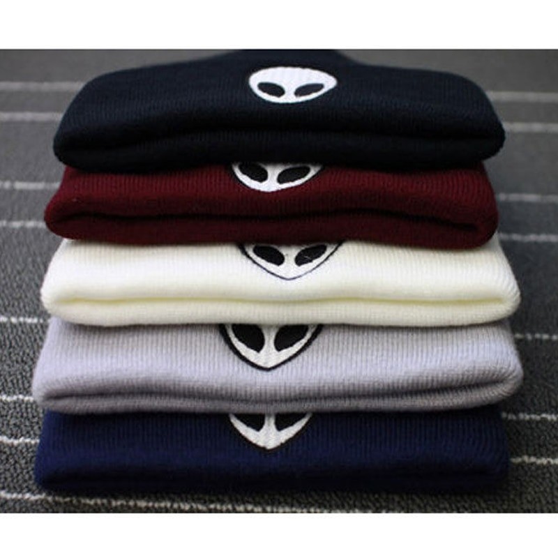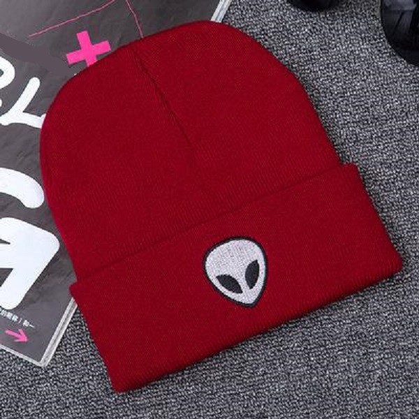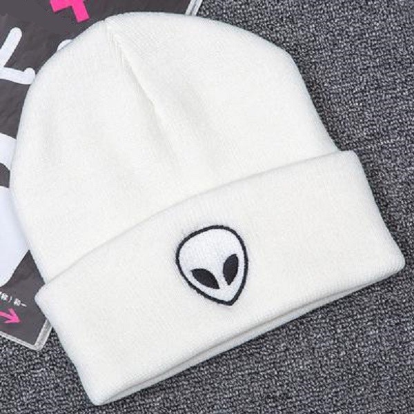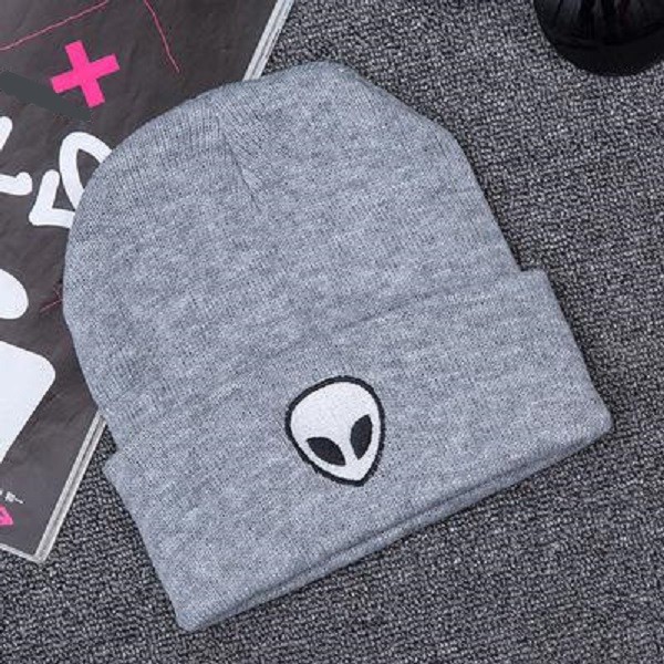 Gorro de inverno clássico. Na parte frontal, estampagem de extraterrestre.