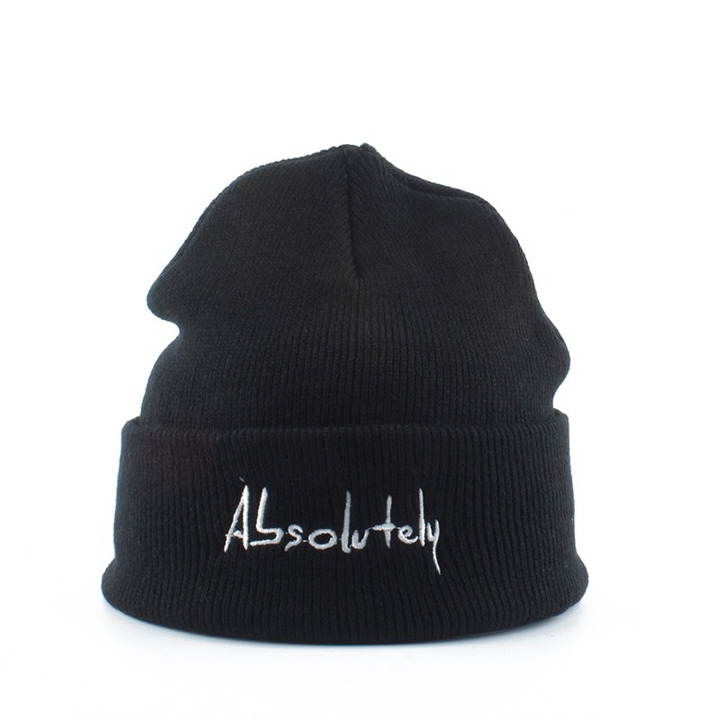 Gorro de Inverno de material agradável com inscrição em inglês.