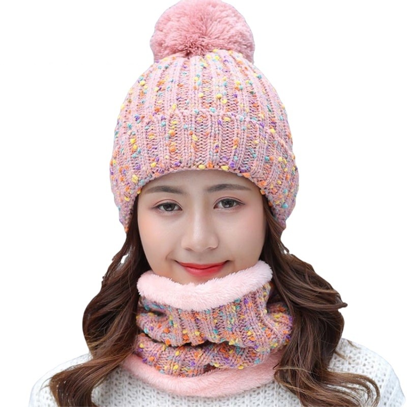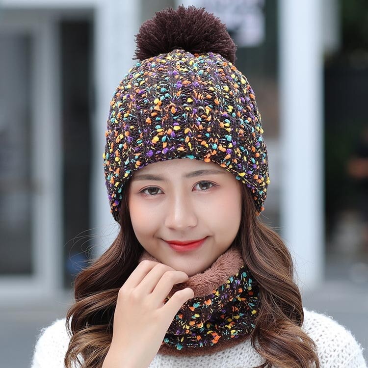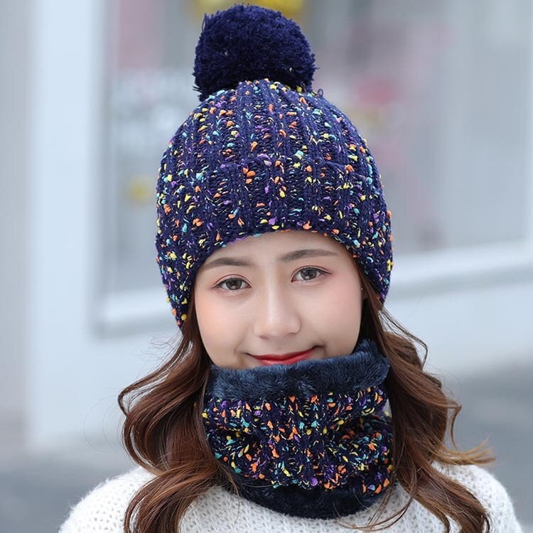 Bonito e prático conjunto de gorro de inverno e cachecol na mesma tonalidade.