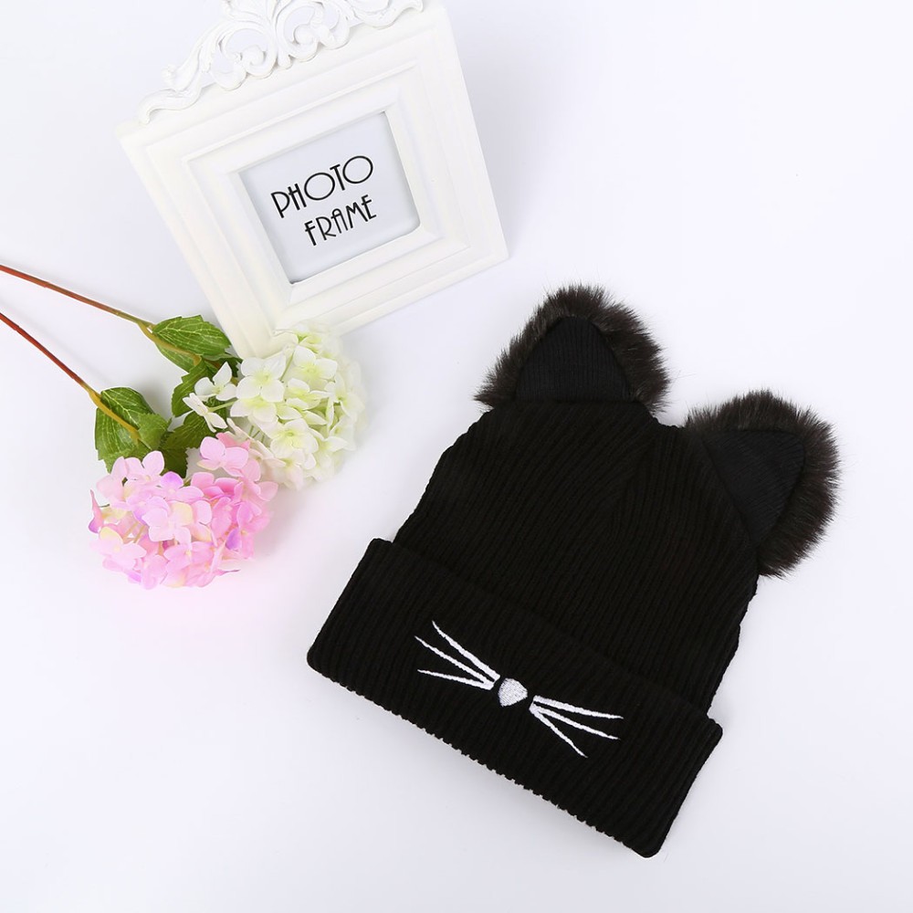 Gorro de inverno feminino adorável com padrão de gato, que vai chamar a atenção de todos à primeira vista.
