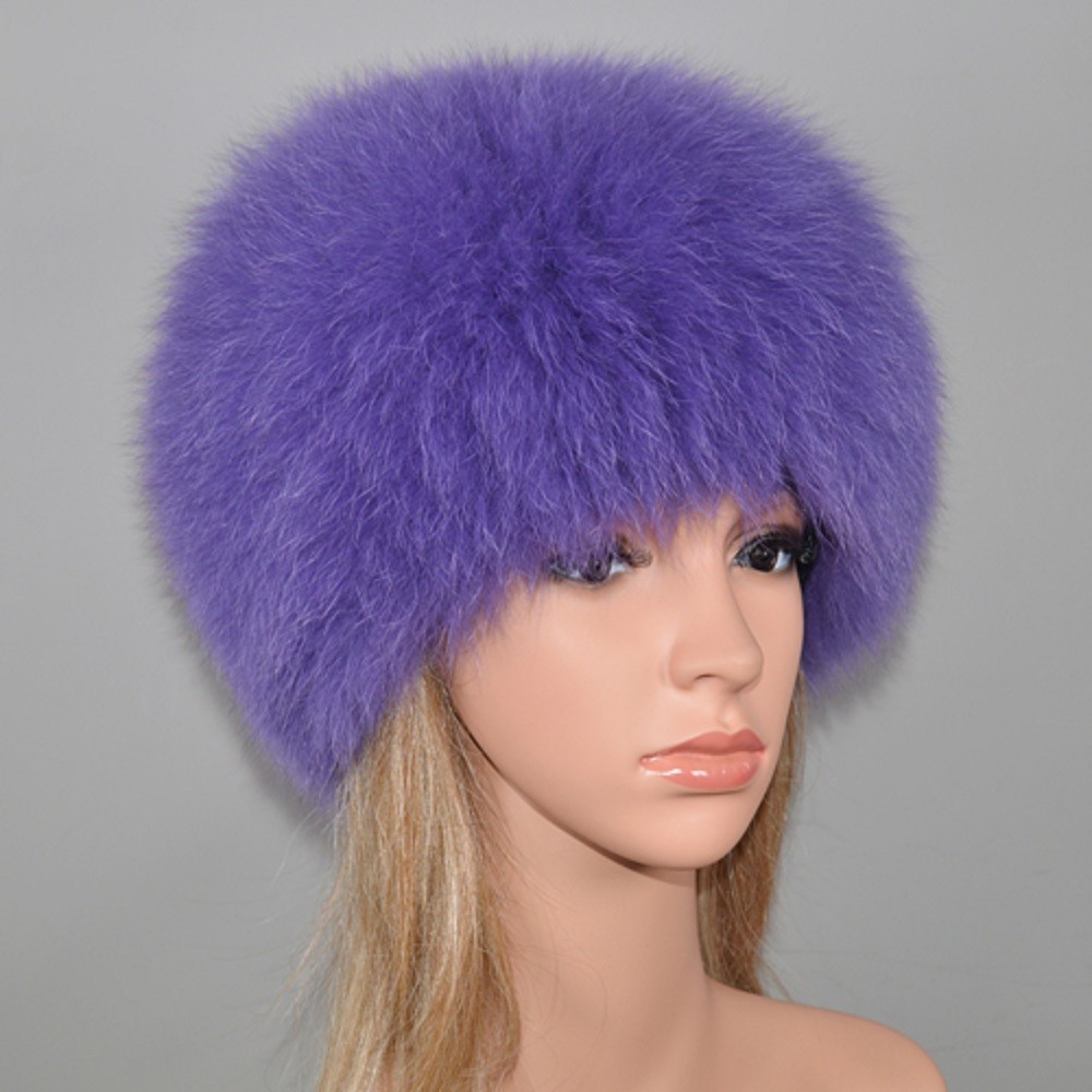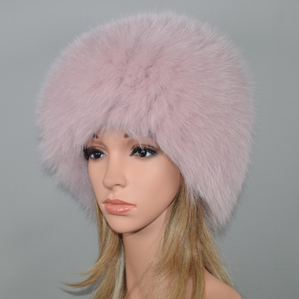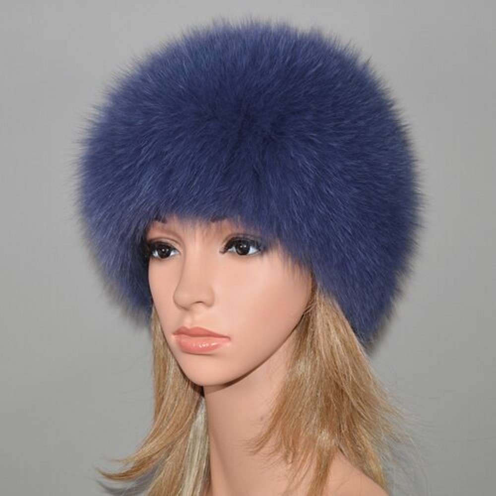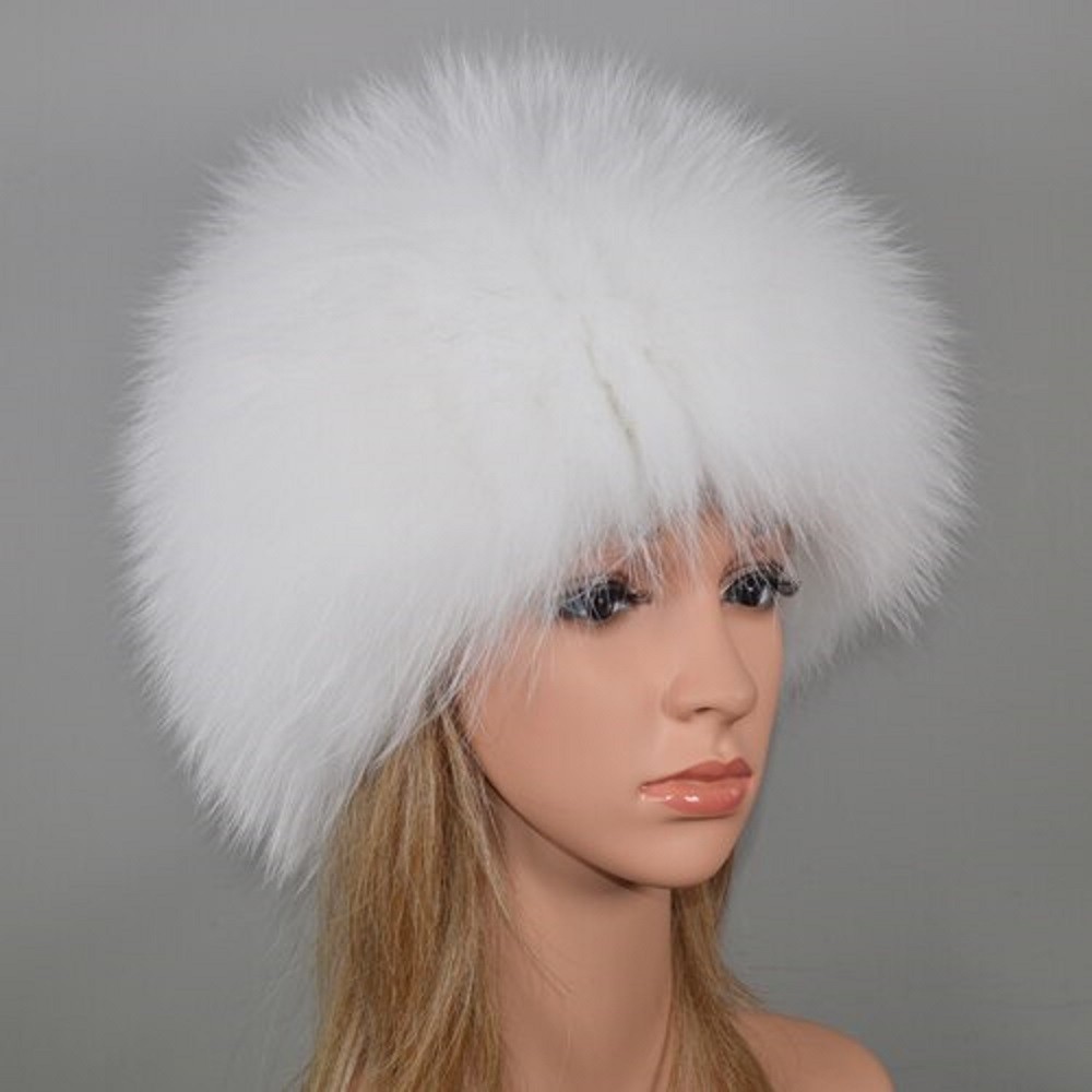 Luxuoso gorro feminino em pele verdadeira de raposa.