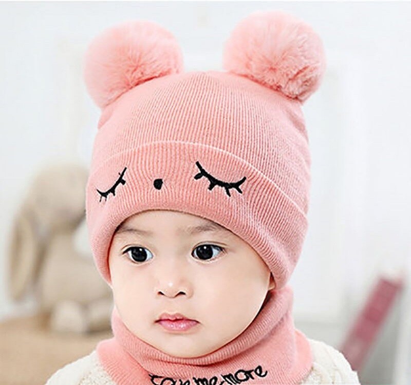 Gorro de Inverno Infantil com Pompons e Gola