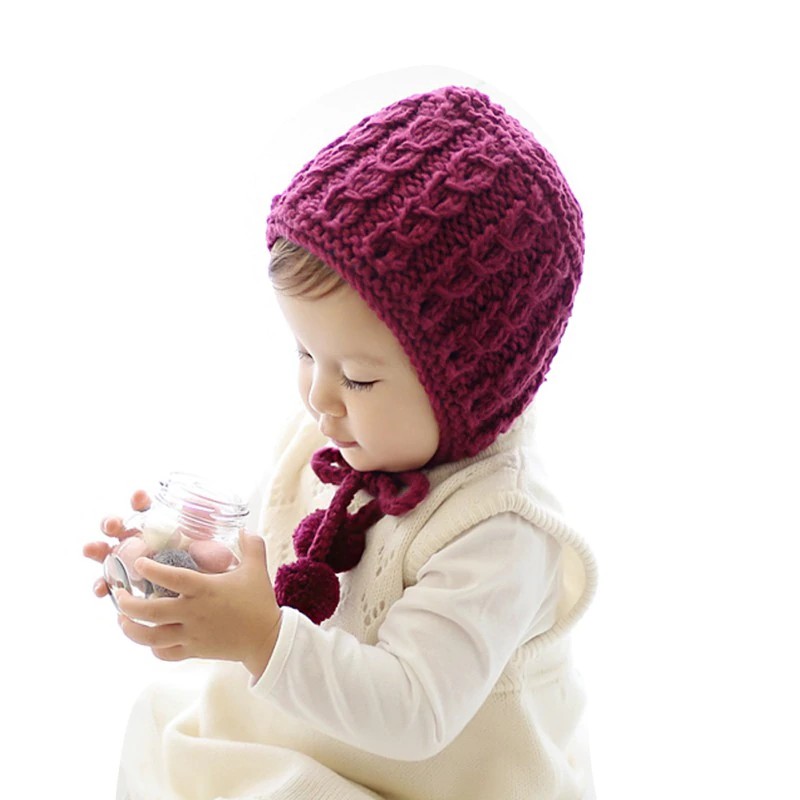 Este lindo gorro com pompons pode ser atado debaixo da cabeça da criança e, por isso, não pode cair.
