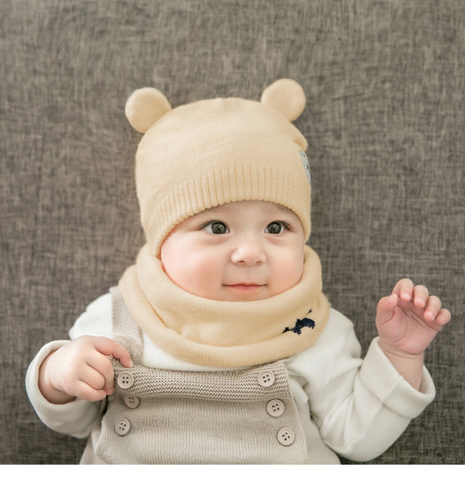 Graças a este gorro com cachecol, o seu filho estará quentinho.