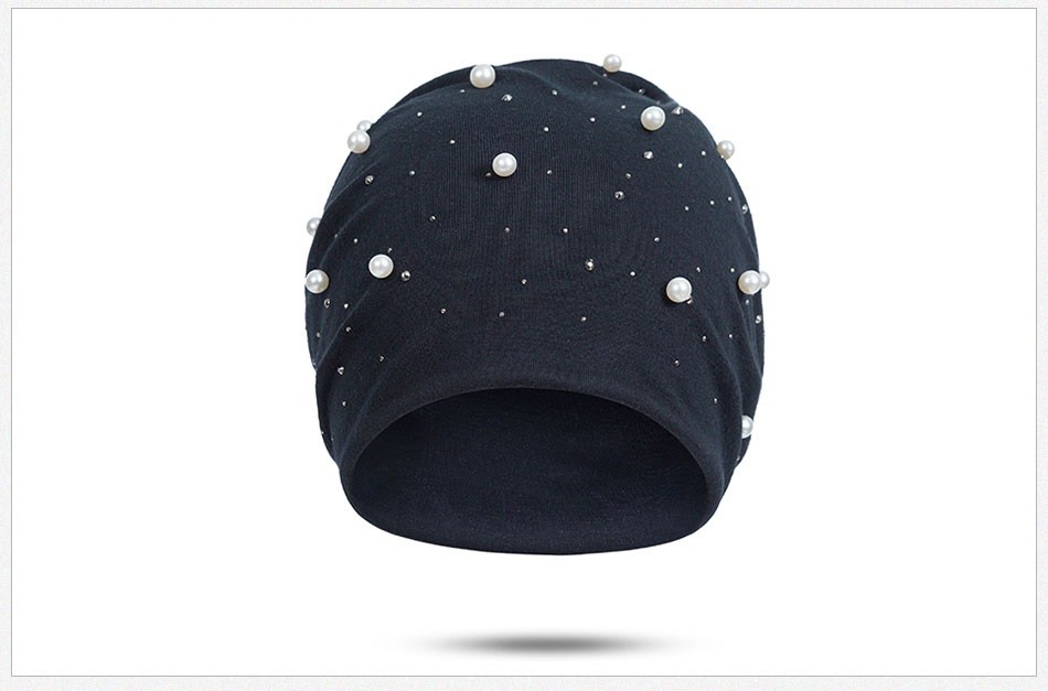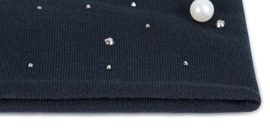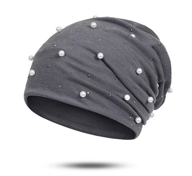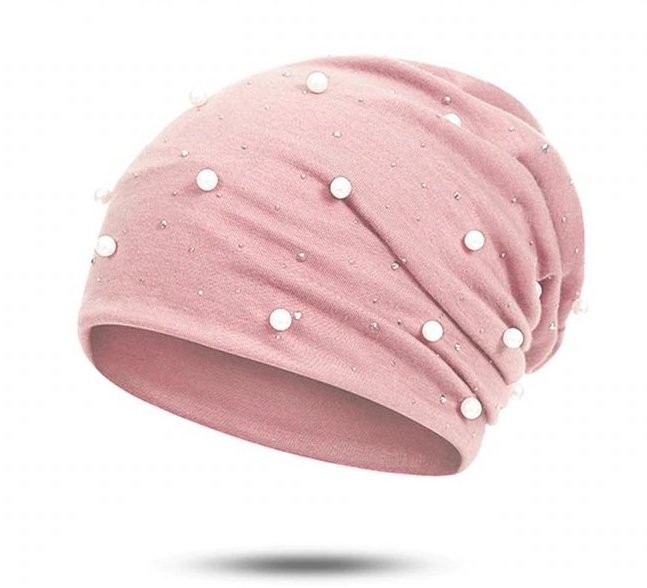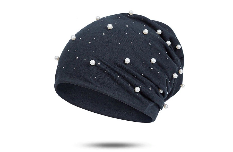 Gorro feminino estiloso decorado com pérolas e pedras.