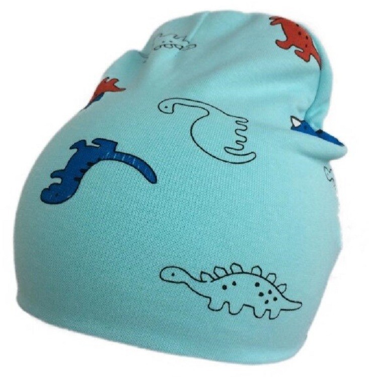 Gorro infantil de algodão mais fino com estampado de dinossauros.