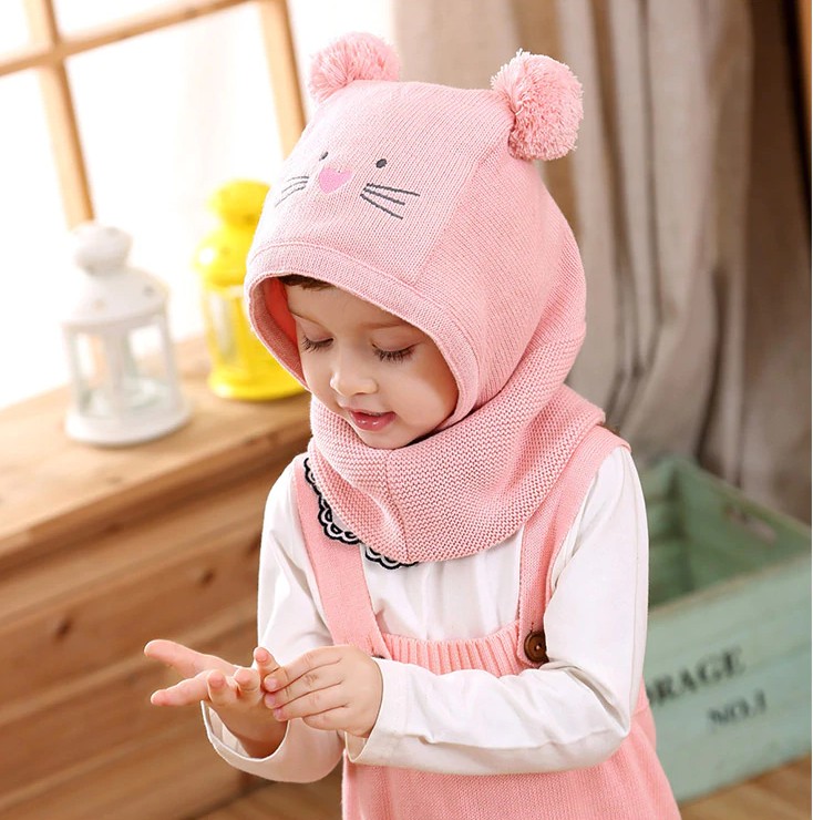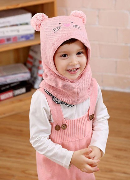 Gorro infantil com gola em forma de gato J1852