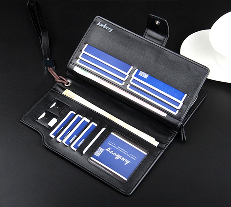 A carteira oferece espaço suficiente para cartões e grandes compartimentos para notas.