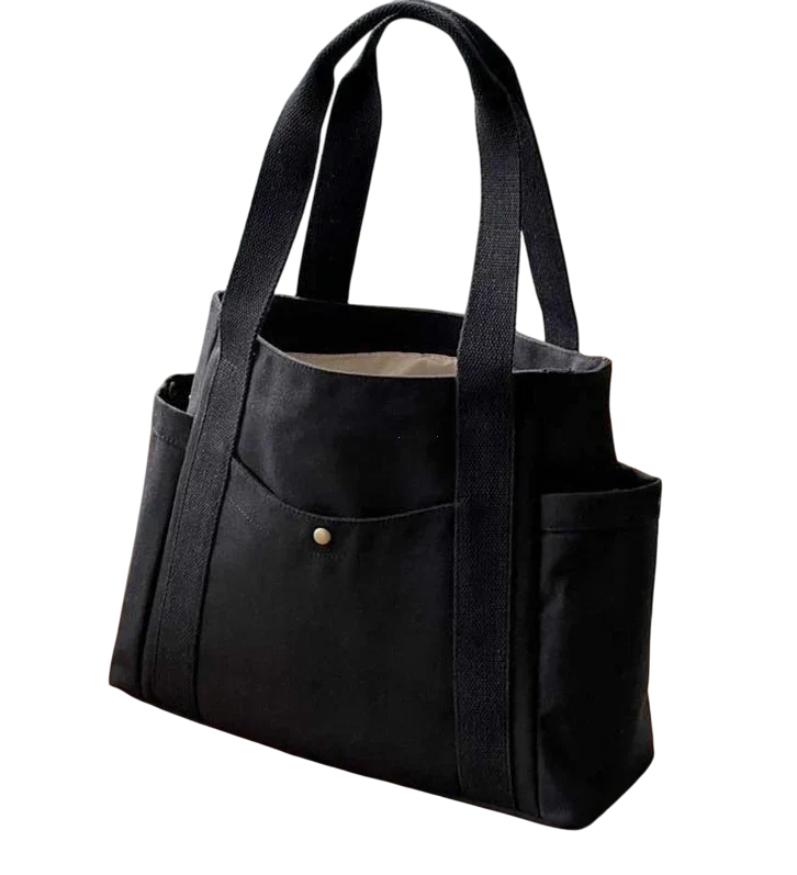 Esta mala de lona de grande capacidade é uma excelente escolha para mulheres que querem ter tudo à mão. Graças ao seu design prático e moderno, é adequada não só para o uso diário, mas também como acessório em viagens ou compras.
