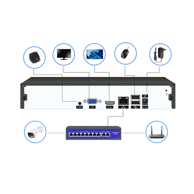 Este sistema fornece uma solução profissional completa para segurança de vigilância de residências, escritórios, armazéns e instalações empresariais. Graças ao reconhecimento inteligente de rosto e deteção de movimento, minimiza alarmes falsos e permite uma monitorização eficaz. Alta definição 4K, operação de rede estável e ampla compatibilidade fazem deste dispositivo uma ferramenta versátil para uso diário em segurança. Acesso remoto e cópia de segurança garantem que terá sempre as suas gravações à mão. A escolha ideal para quem procura unir desempenho, fiabilidade e funcionalidades modernas.