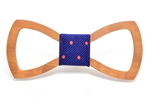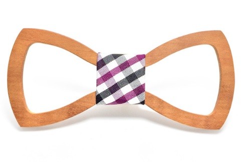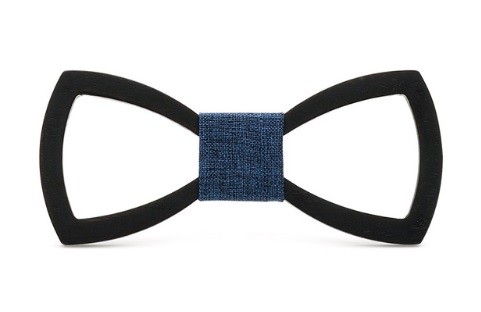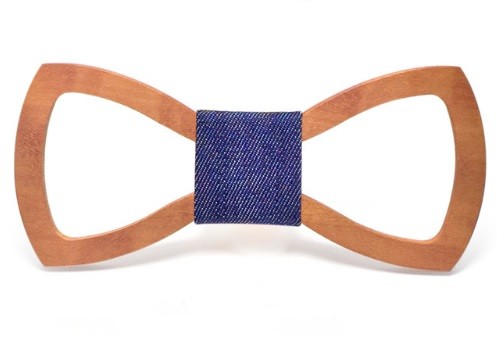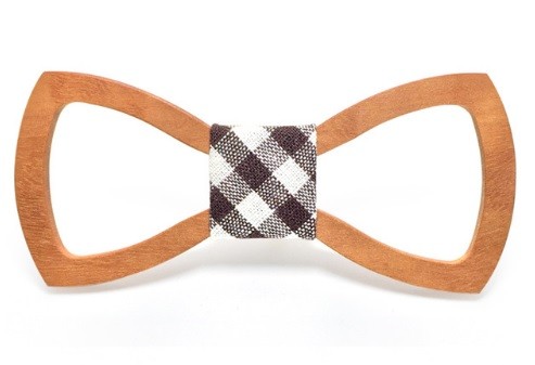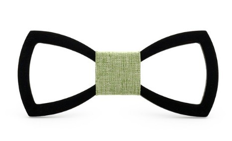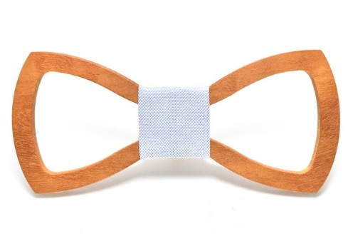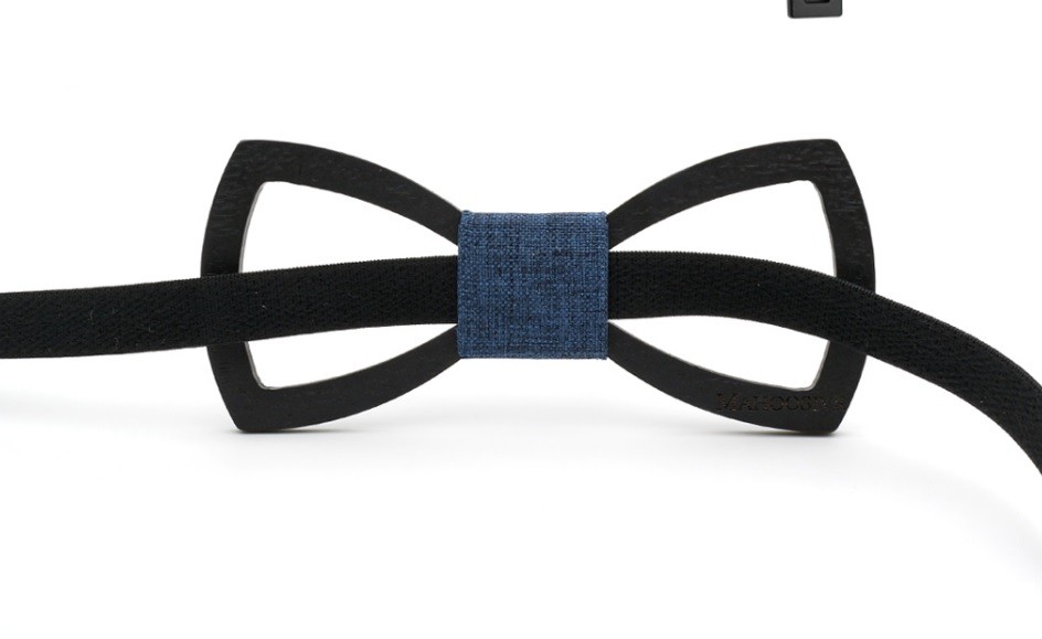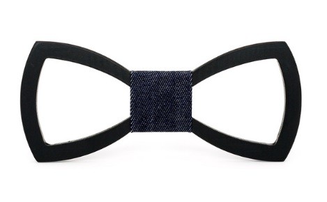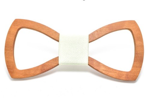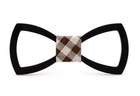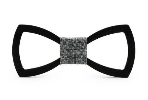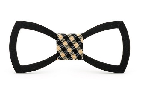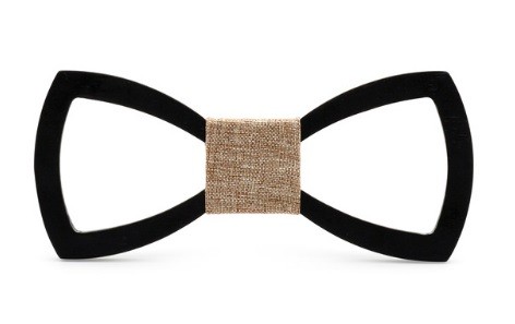 A gravata-borboleta de madeira esculpida confere originalidade ao seu vestuário formal.