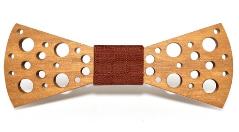 A gravata borboleta de madeira, esculpida na cor castanho claro, pode ser um acessório diário para o homem.