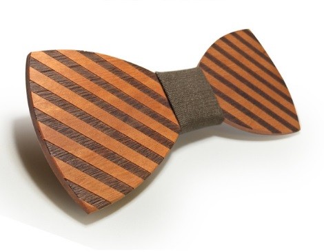 Gravata de madeira com faixa gravada ao centro, adornada com tecido de qualidade.