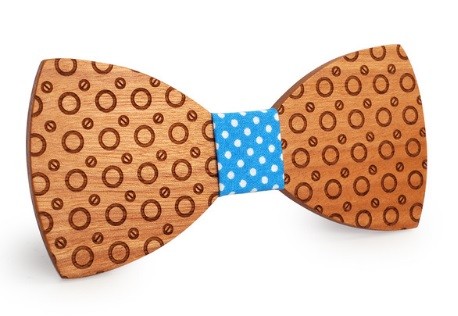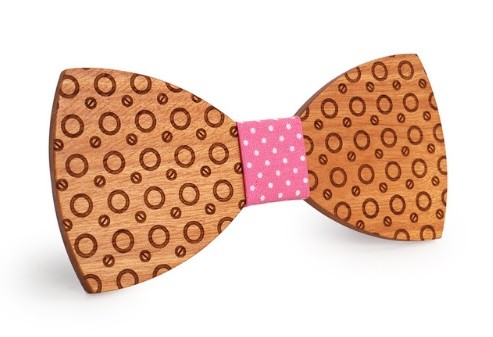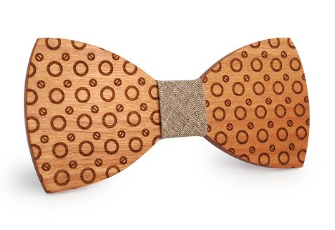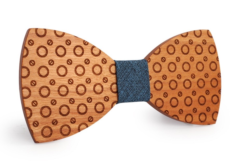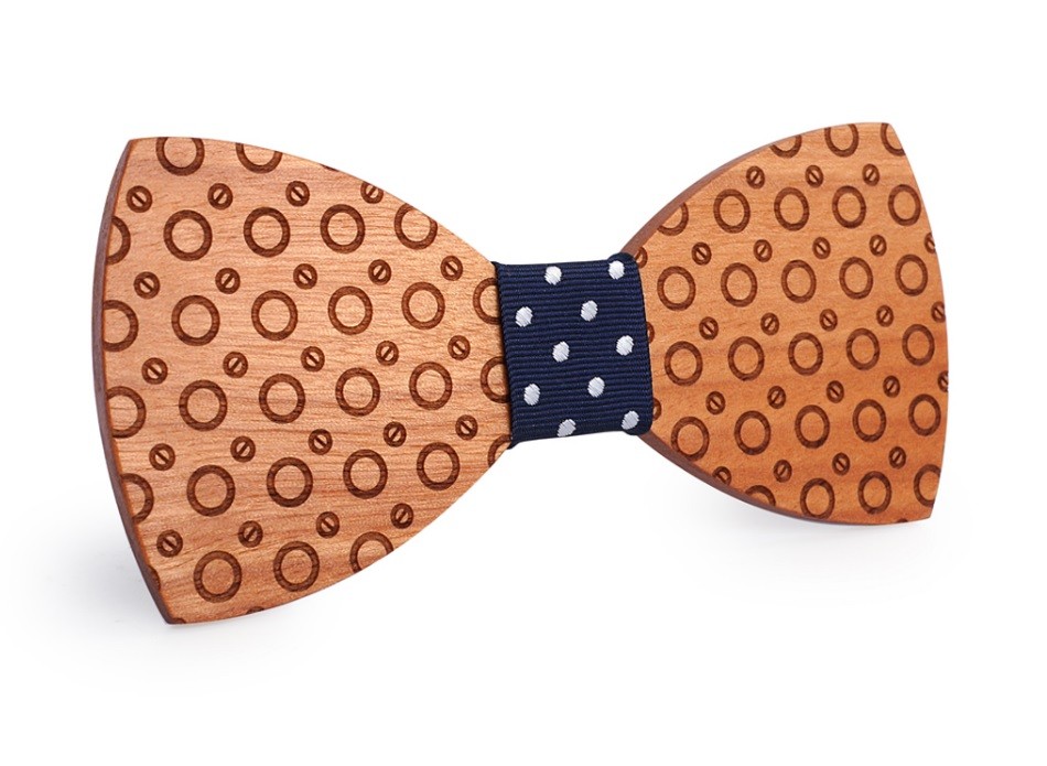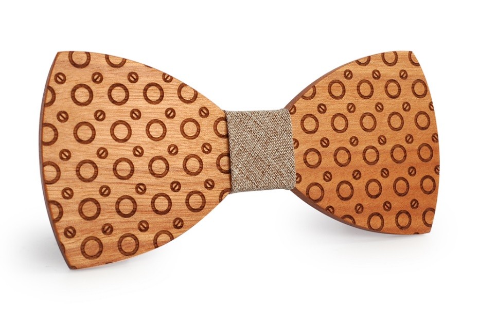 A gravata de madeira com gravação em forma de anéis ilumina o seu fato.