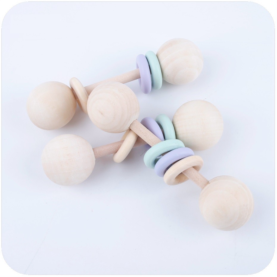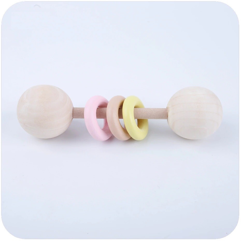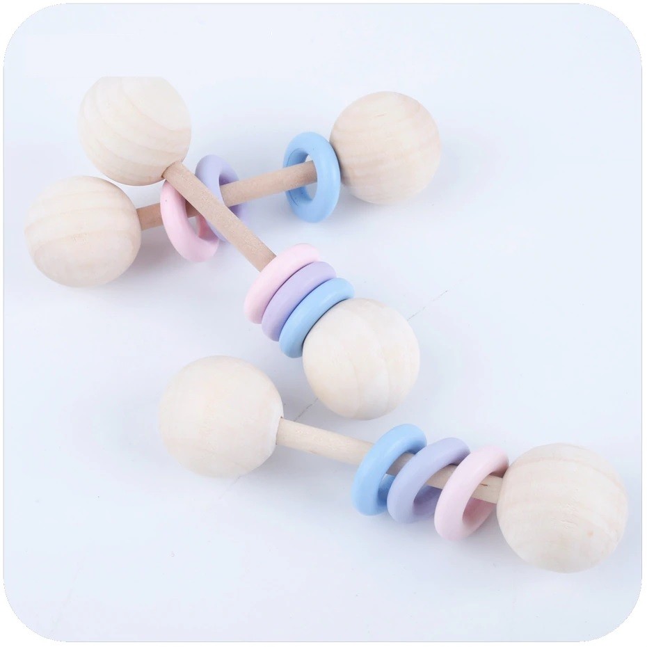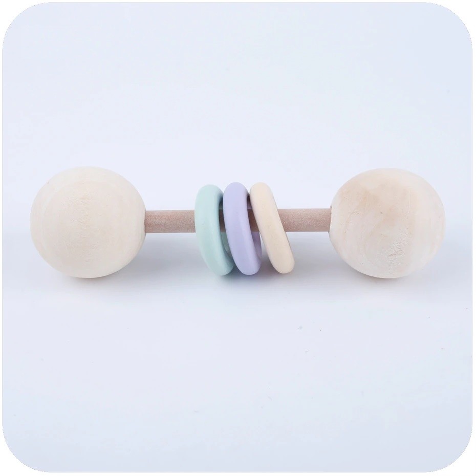 Este haltere para crianças é excelente para aprender a segurar objetos. Os anéis de silicone são bons para os primeiros dentes.