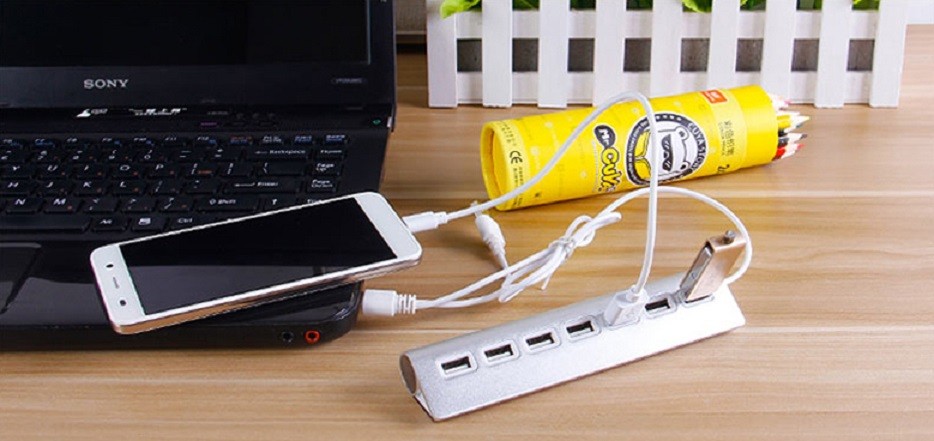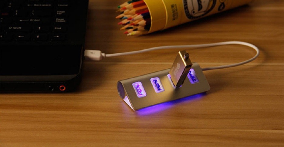 O HUB destaca-se pelo seu design elegante e luzes LED que indicam os portos que está a utilizar.