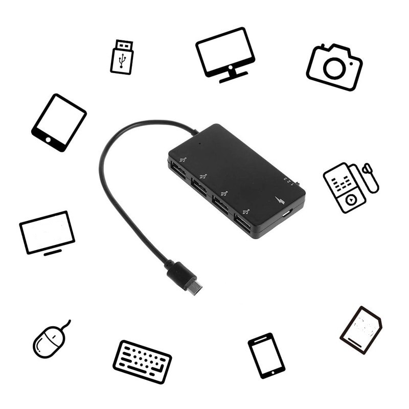 Conectores: Micro USB (macho), Micro USB (fêmea), 4x USB (fêmea)