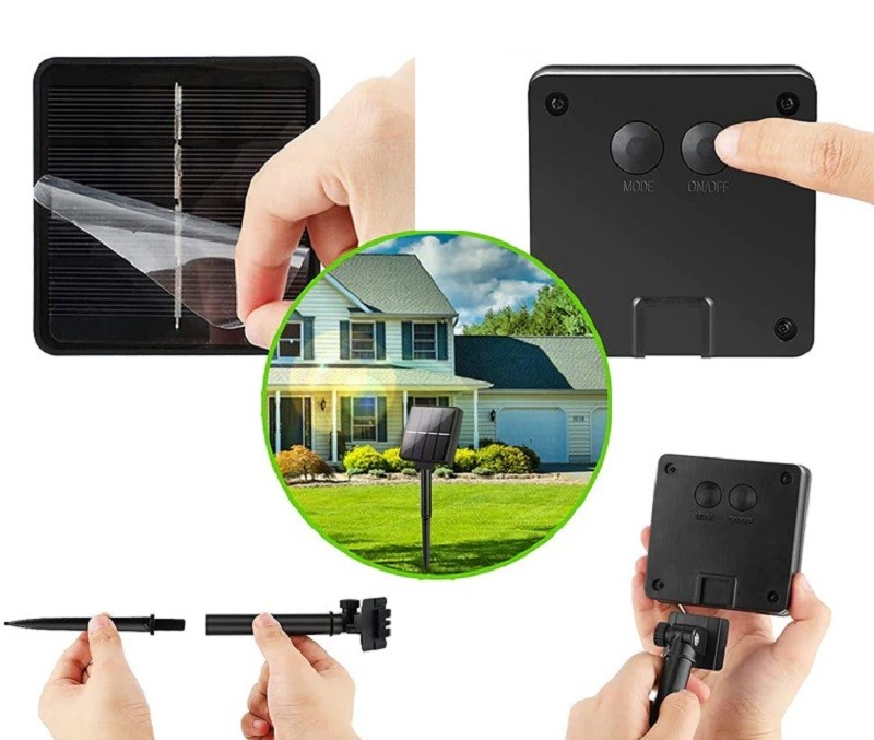 Fonte de alimentação: solar. Tempo de carregamento: 4 - 8 horas. Duração da iluminação: 10 - 16 horas. 8 modos de iluminação. Número de luzes LED: 50. Resistência à água: IP65. Descrição completa