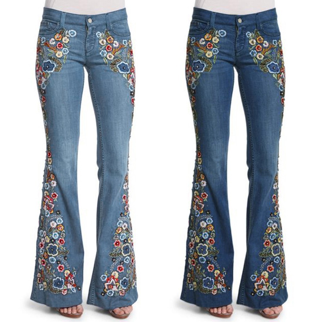 Página inicial Página inicial Roupa e acessórios Roupa de mulher Jeans de mulher Jeans de mulher à boca de sino com apliques