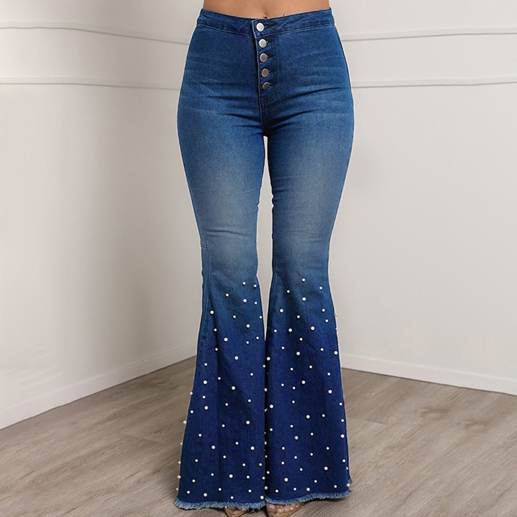 Página inicial Página inicial Roupa e acessórios Roupa de mulher Jeans de mulher Jeans de mulher à boca de sino com pérolas