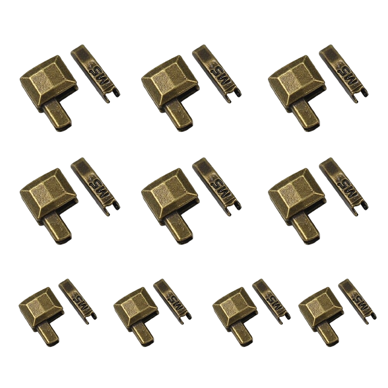 Com este prático kit de reparação de fechos, pode facilmente e rapidamente reparar todos os fechos danificados. O kit contém duas partes metálicas - uma curva e uma reta - que se colam facilmente nas extremidades do fecho danificado. As dimensões das peças são 10 x 7 mm e 10 mm, tornando-as perfeitas para a maioria dos fechos. Com este kit, poderá prolongar a vida útil das suas roupas e acessórios favoritos.