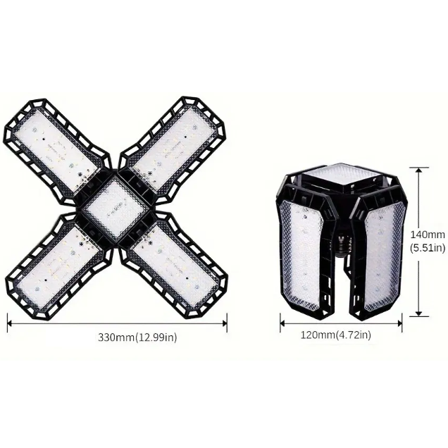 Página inicial Página inicial Auto-moto Equipamento de garagem Acessórios de garagem Lâmpada de teto LED dobrável para garagem 60W E27 Iluminação ajustável com 4 painéis Super luz brilhante oficina branca fria