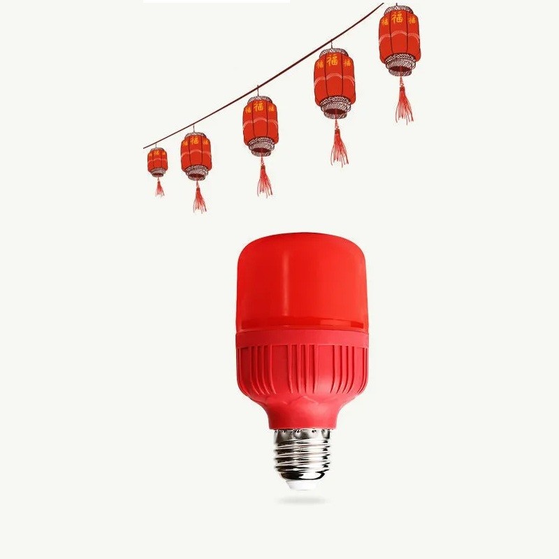 Lâmpada LED exterior E27 com luz vermelha é ideal para decorações de festas, iluminação de jardins e atmosfera festiva. Económica 5W, ângulo de luz de 270°. Descrição completa