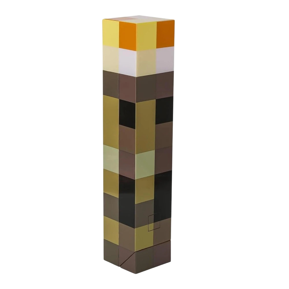 Esta estilosa lâmpada LED em forma de tocha inspirada no popular jogo MC traz ao quarto de qualquer criança um toque de aventura e criatividade. É ideal como luz noturna, decoração de mesa ou luz pendente graças à prática fivela. Oferece quatro modos de LED de cores diferentes, fácil carregamento via USB e uma bateria interna de 1200 mAh de alta qualidade. Suas dimensões de 28 x 6 x 6 cm garantem que seja suficientemente marcante, mas ao mesmo tempo compacta para uso diário. Um excelente presente para fãs de jogos de construção e também como um acessório estiloso para o quarto ou sala de jogos.