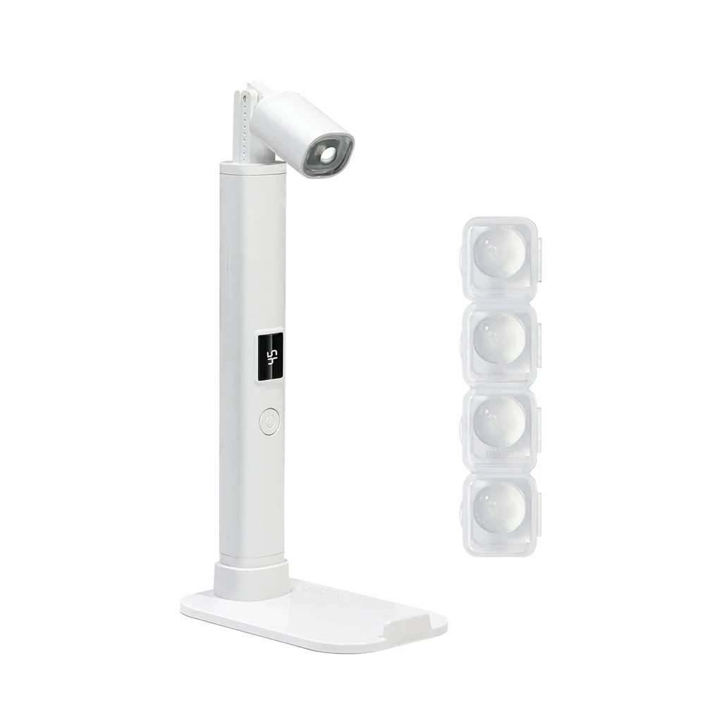 Lâmpada UV LED mini portátil de mesa com bateria recarregável de 180mAh, temporizador de 45/60s e inclinação ajustável de 135°. Ideal para viagens e uso doméstico. Descrição completa