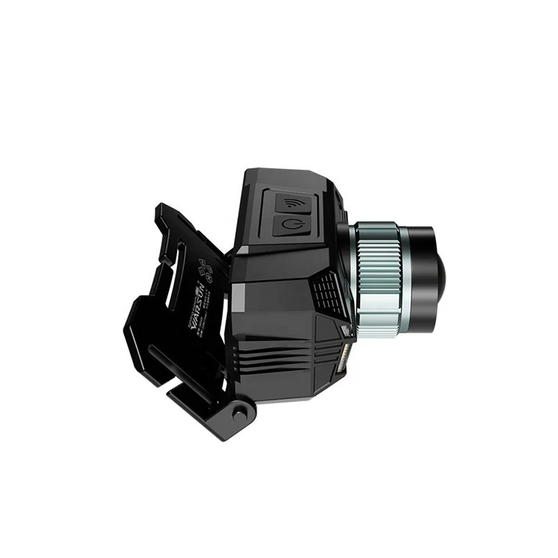 Lanterna frontal ajustável com potente luz LED, zoom, modo vermelho, carregamento USB C e resistência IP45 para trabalho, campismo e desporto. Descrição completa