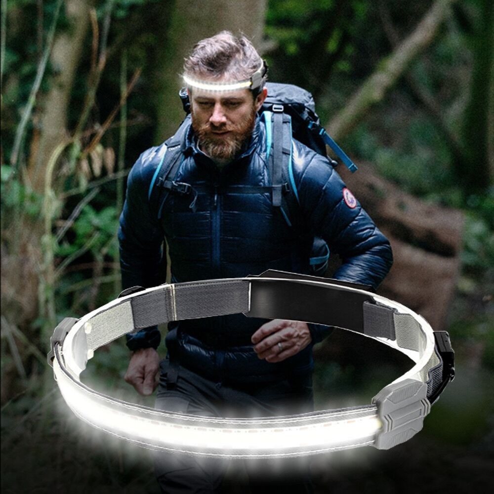 Lanterna potente com fita LED. Resistência à água IPX4. Baixo peso. Confortável de usar. Ilumina perfeitamente o local necessário. Dispõe de 3 modos de iluminação. Alimentada por uma bateria recarregável embutida. Resistente a quedas.