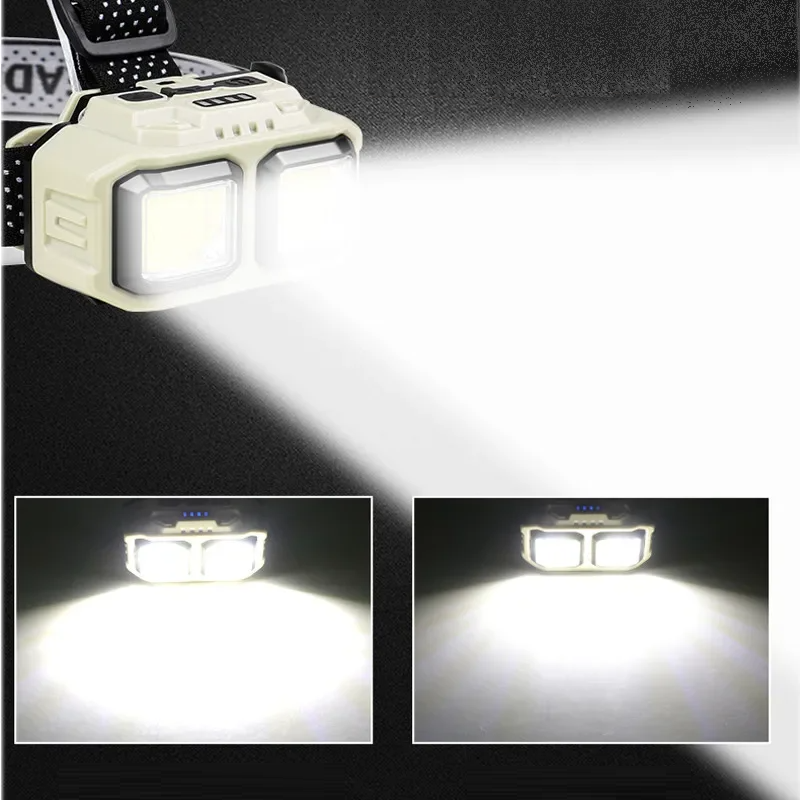Lanterna LED potente 2LED USB C Carregamento Sem Bateria 18650 Correia Ajustável Lanterna à Prova de Água Camping Caminhadas Trabalho