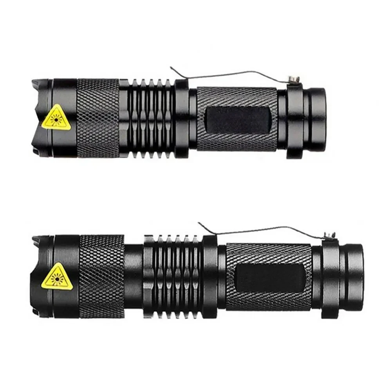 Lanterna LED táctica à prova de água 9,5–10 cm IP67 com possibilidade de focalização Lanterna compacta Corpo antiderrapante Plástico reforçado Luz para atividades ao ar livre